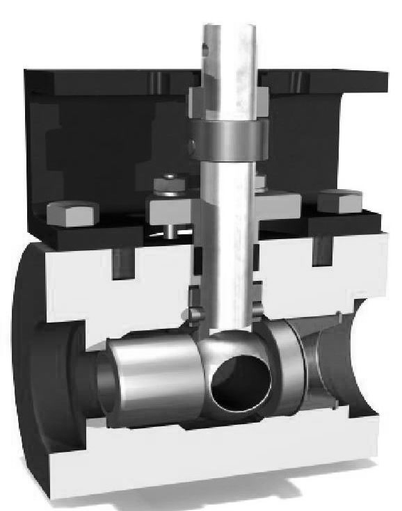 對(duì)于介質(zhì)溫度高于400℃的場(chǎng)合普通的定位導(dǎo)向結(jié)構(gòu)是不可靠的。此時(shí)應(yīng)采用外部軸承結(jié)構(gòu)來(lái)保證閥板的定位與支撐,這樣可以避免內(nèi)部高溫對(duì)導(dǎo)向結(jié)構(gòu)的影響。